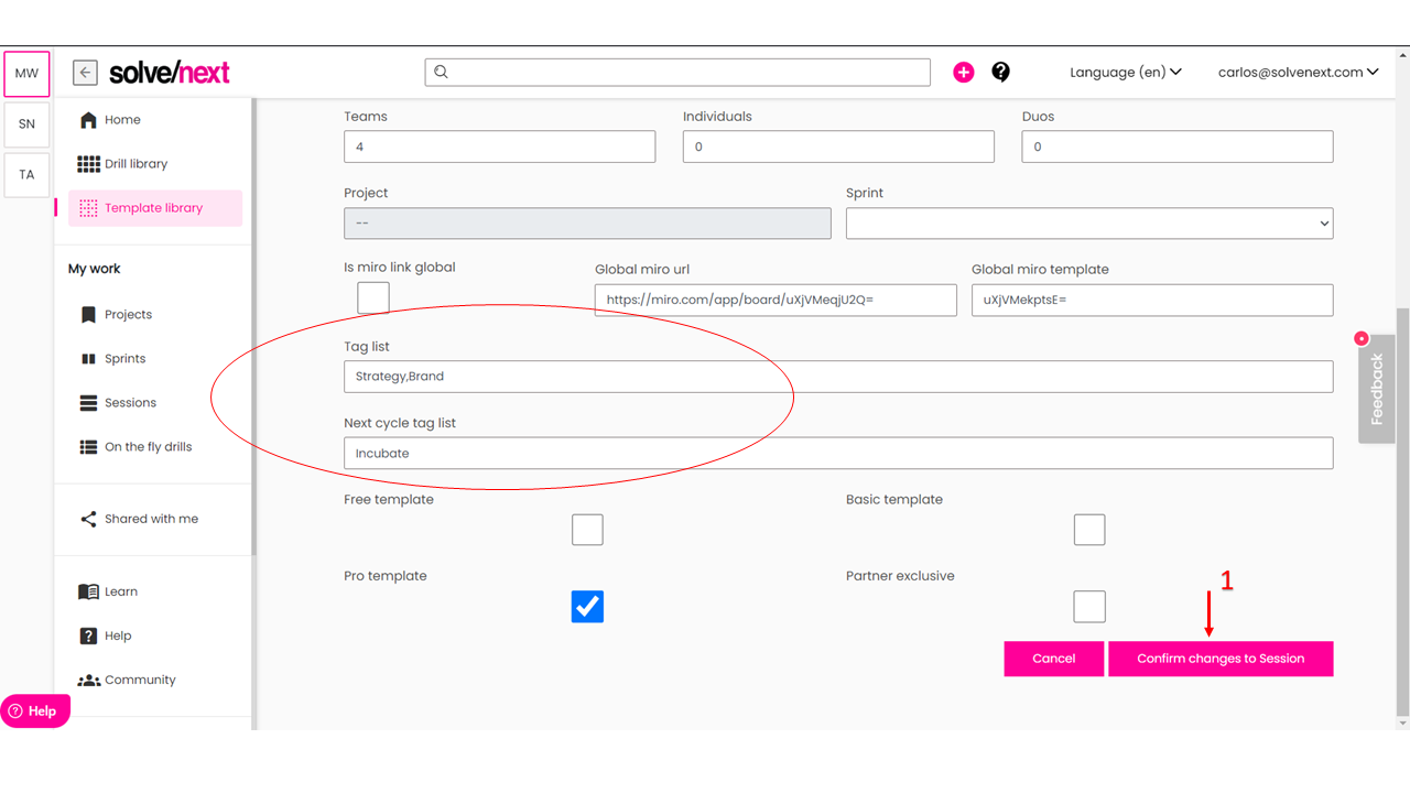 As a super admin, you can add tags to Template; this can be done in the edit screen of any template; for example, if you want to add tags to a Session template, simply go to the Session template, and click on edit.